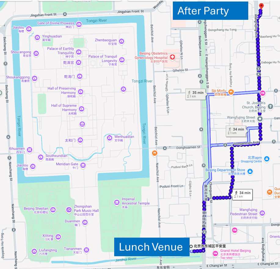 From the wedding venue to the after party is half an hour by foot or ten minutes by taxi. Plenty of time for a quick pit stop in between at your hotel or sightseeing (feel free to ask us for recommendations). For the taxi we recommend using the didi app or didi in your alipay app, as explained in the tips and tricks section of this website.